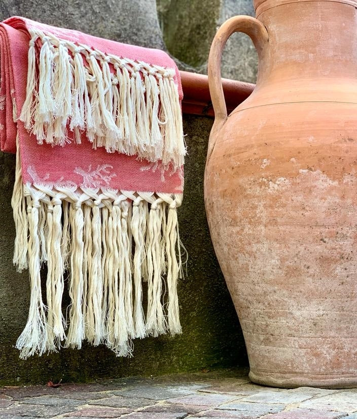 Inspired by the breathtaking Amalfi Coast, our Linen Hand Towel Set brings a touch of Mediterranean magic to your home. Woven with care from the finest Italian linen and cotton, the soft texture and delicate fringe offer a simple yet sophisticated elegance. Coral motifs, reminiscent of the sea, add a romantic coastal flair, making these towels a perfect blend of art and function.